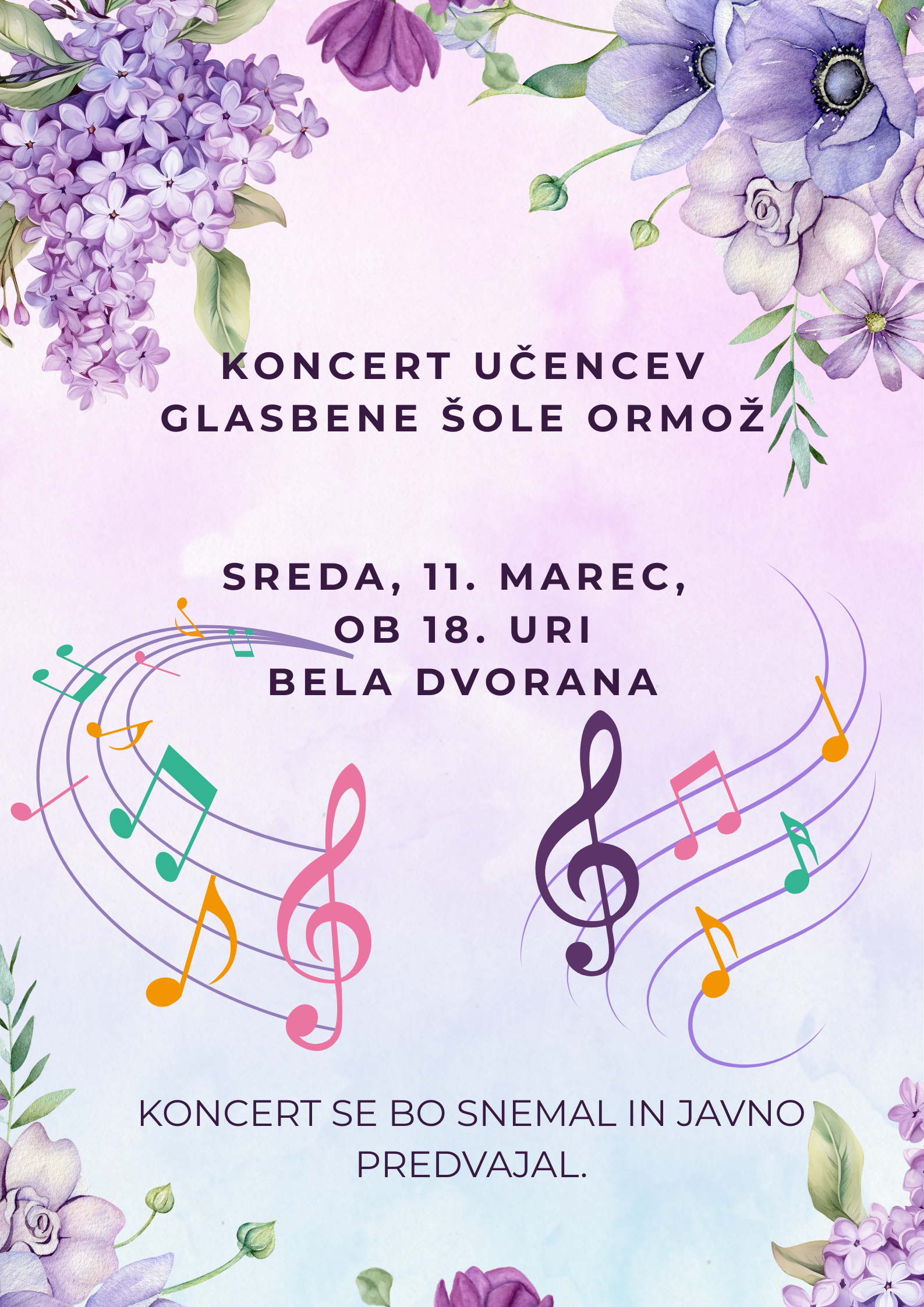 - 28. maj – sprejemni preizkus za vpis v glasbeno šolo.